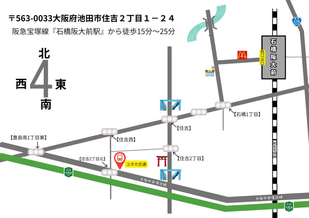 大阪梅田駅より阪急宝塚線へ乗り、石橋阪大前で降りる